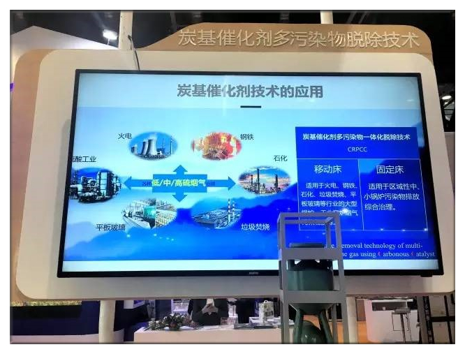 北京國能中電節(jié)能環(huán)保技術(shù)股份有限公司是國能中電集團(tuán)旗下的控股子公司,主要從事節(jié)能環(huán)保業(yè)務(wù)。國能中電在展會中重點(diǎn)展示了一項(xiàng)新技術(shù):炭基催化劑干法煙氣多種污染物一體化脫除技術(shù)。該技術(shù)是國能中電基于中國科學(xué)院的國家863課題超過20年的實(shí)驗(yàn)室研究進(jìn)行的工業(yè)成果轉(zhuǎn)化,并于今年上半年在濟(jì)南鋼鐵獲得工業(yè)級試驗(yàn)成功。