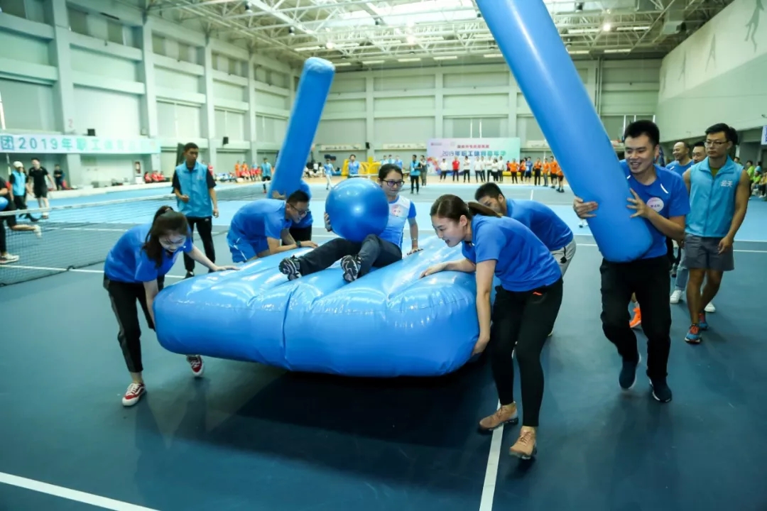 此次活動的項目經(jīng)過了精心設(shè)置,將在職工中普遍開展的羽毛球、籃球項目設(shè)置為專業(yè)競技項目,此外,綜合考慮職工身體素質(zhì)差異和群眾參與性,設(shè)置了輕量化、趣味性更強(qiáng)的團(tuán)體競技項目七項:滾滾向前、旋轉(zhuǎn)飛碟、旱地龍舟、漢諾塔、動感顛球、超級障礙賽、拔河。