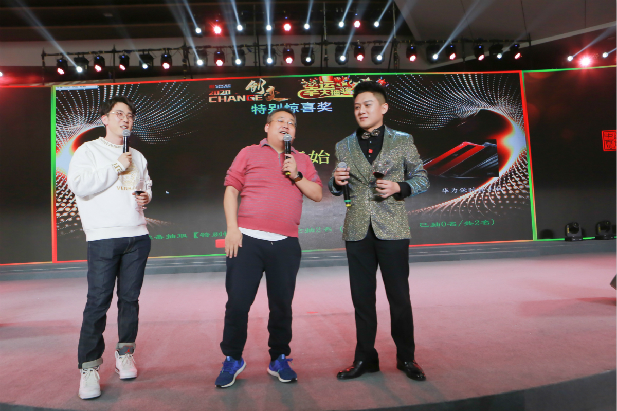 年會(huì)現(xiàn)場(chǎng)抽獎(jiǎng)送出了若干華為手機(jī)、平板電腦、智能音箱等數(shù)百份驚喜大獎(jiǎng)。