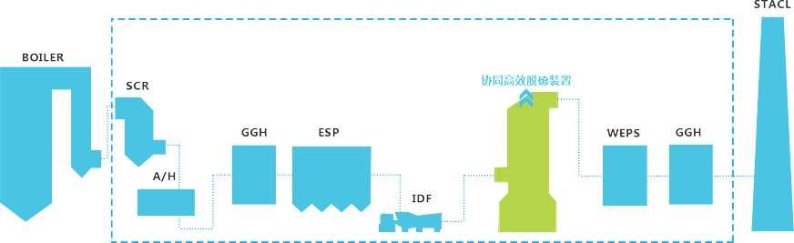 煙氣污染物協(xié)同脫除技術系統(tǒng)(SRS)是指在一設備內同時脫除兩種及以上煙氣污染物,或者為下一流程設備脫除污染物創(chuàng)造有利條件,實現(xiàn)煙氣污染物在多個設備中高效聯(lián)合脫除,同時實現(xiàn)良好的節(jié)能效果的技術。國能中電系統(tǒng)地研究脫硝、除塵和脫硫之間的協(xié)同關系,充分考慮各類污染物的綜合脫除效果,通過系統(tǒng)性的設計,達到多種污染物的協(xié)同脫除的目的,實現(xiàn)最優(yōu)的排放指標、最好節(jié)能效果和環(huán)保裝置的運行經濟性。